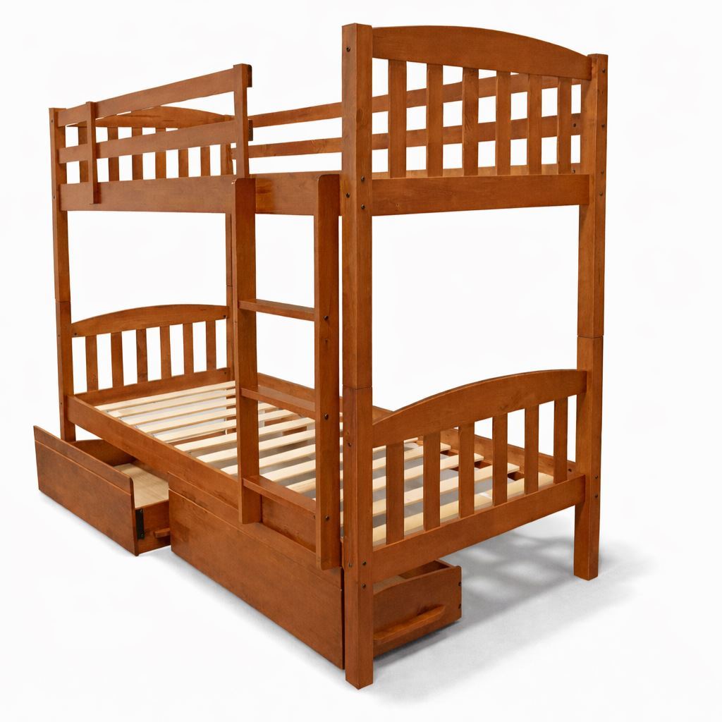 Miki High Solid Hardwood Single Bunk Bed with Storage Drawers – Antique Oak