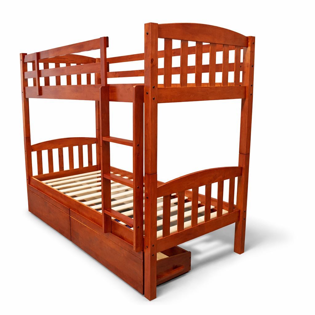 Built in Malaysia with a 100% solid rubberwood structure, this bunk bed is engineered for superior density and structural strength. Compared with softwood pine or engineered wood alternatives, solid hardwood delivers enhanced stability and reliable long-term durability for everyday family use.