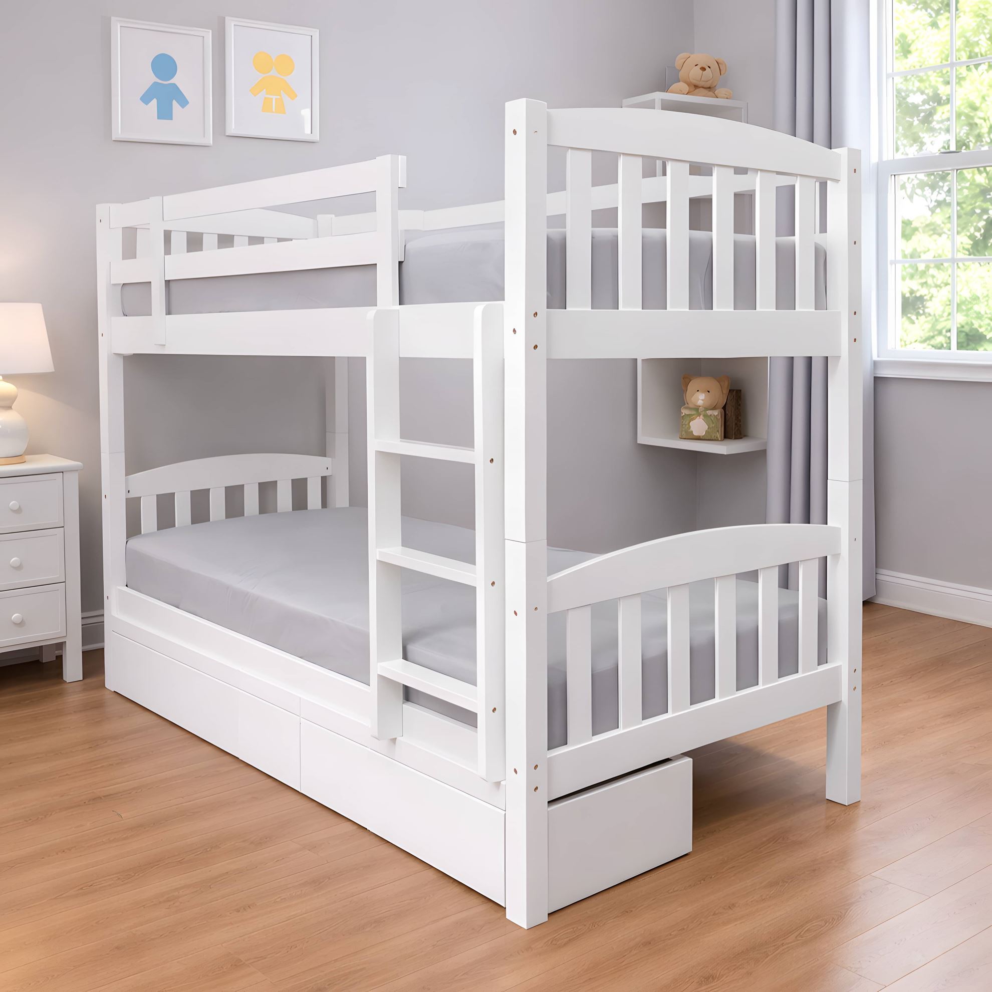 Built in Malaysia with a 100% solid rubberwood structure, this bunk bed is engineered for superior density and structural strength. Compared with softwood pine or engineered wood alternatives, solid hardwood delivers enhanced stability and reliable long-term durability for everyday family use.