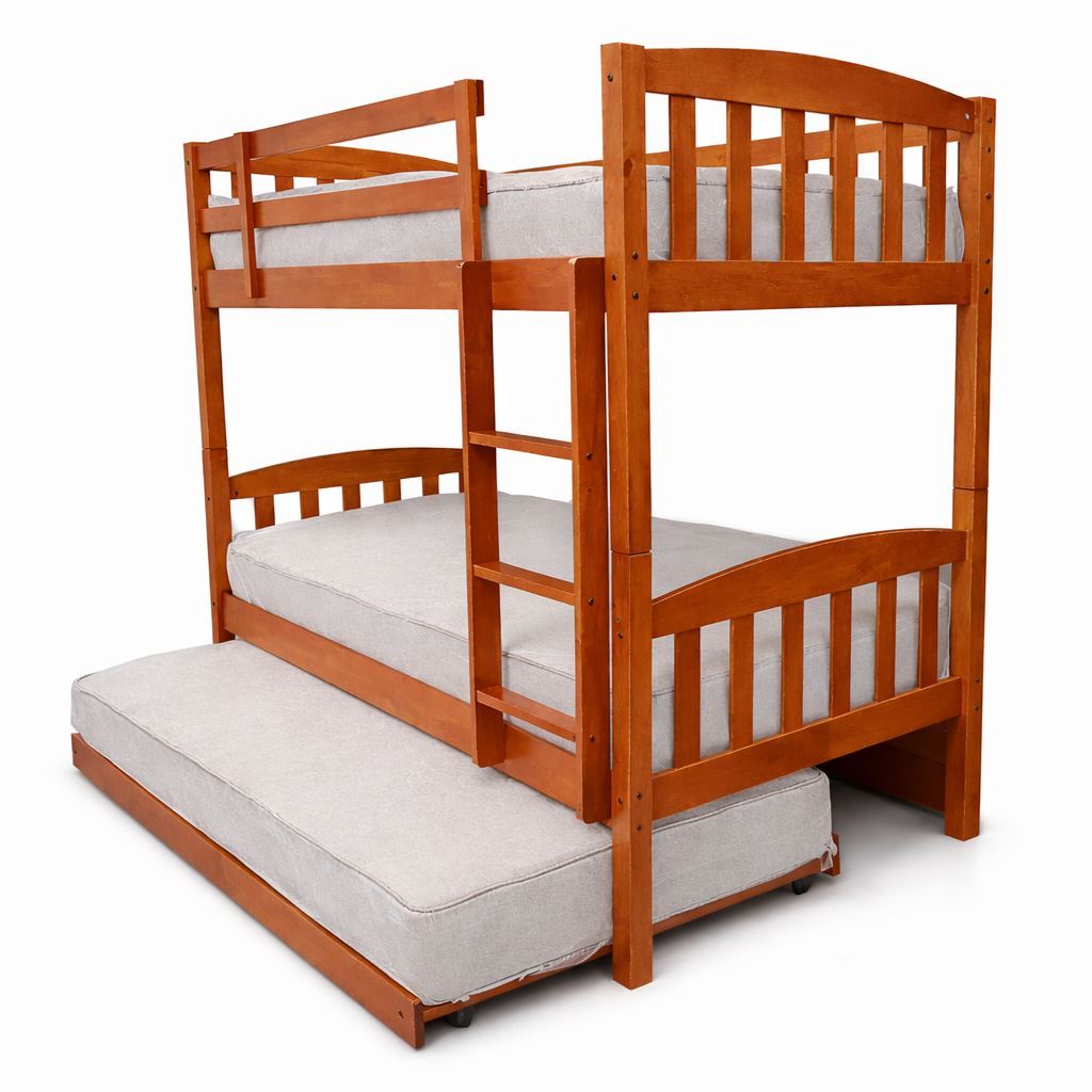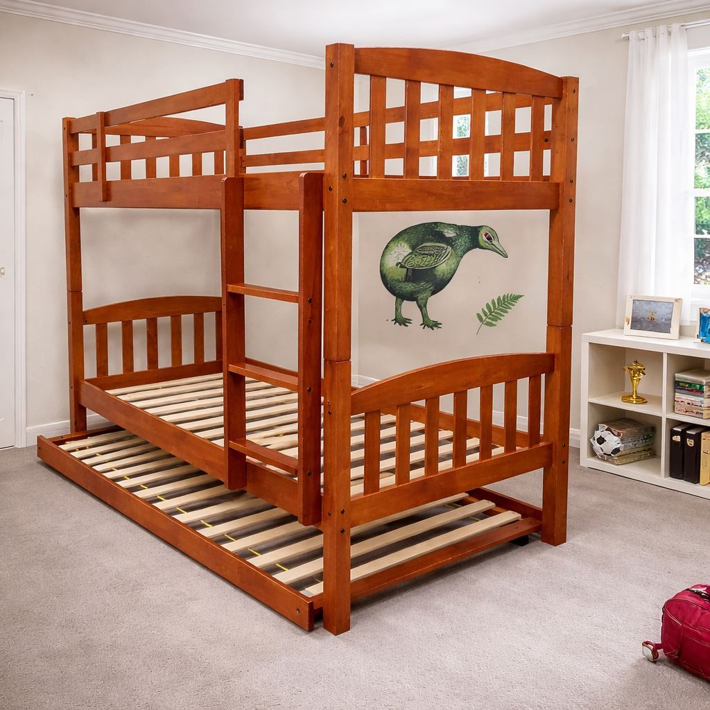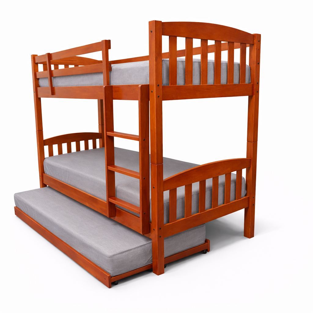 Built in Malaysia with a 100% solid rubberwood structure, this bunk bed with pull-out trundle is engineered for superior density and structural strength. Compared with softwood pine or engineered wood alternatives, solid hardwood delivers enhanced stability and reliable long-term durability for everyday family use.
