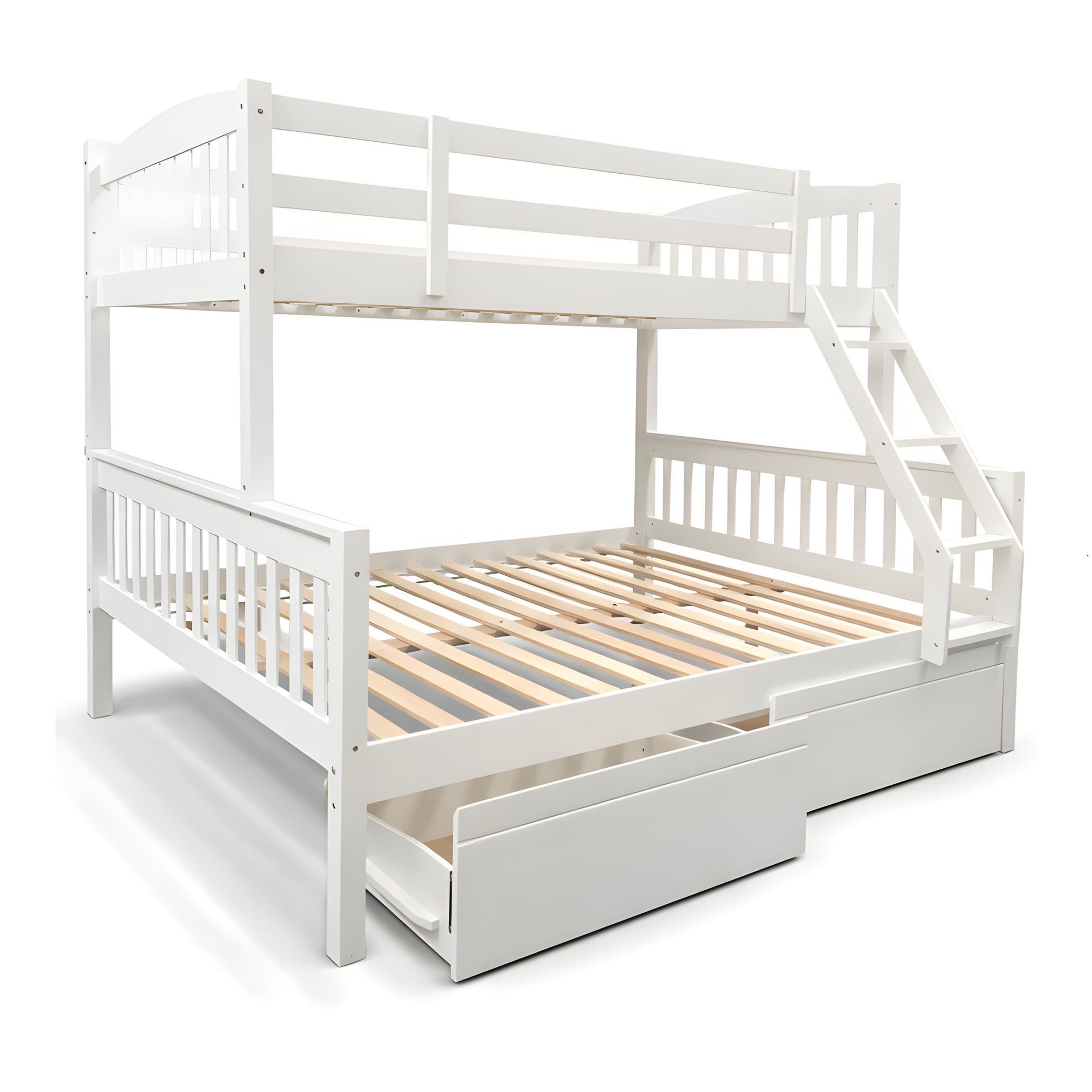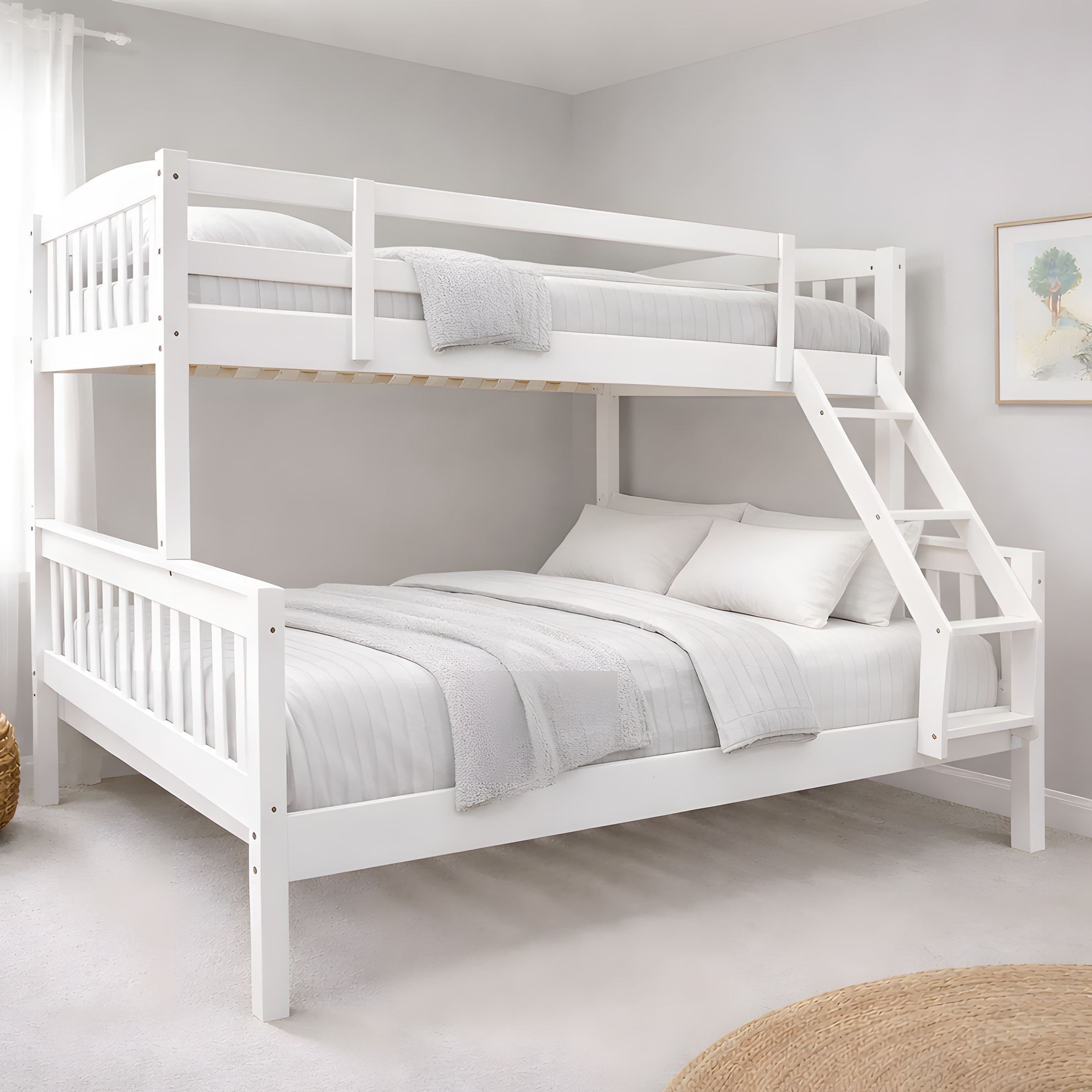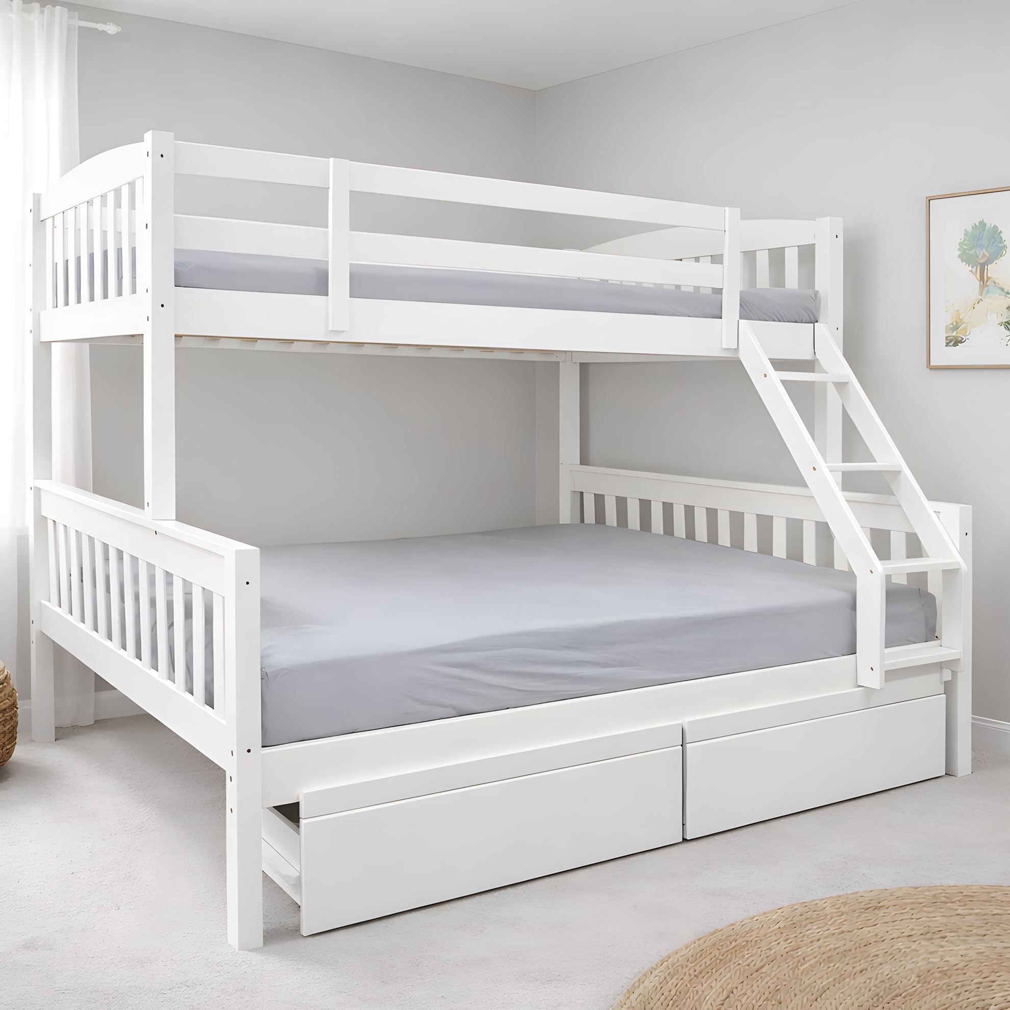 • Miki Higher Solid Hardwood Bunk Bed – King Single Over Queen – White
