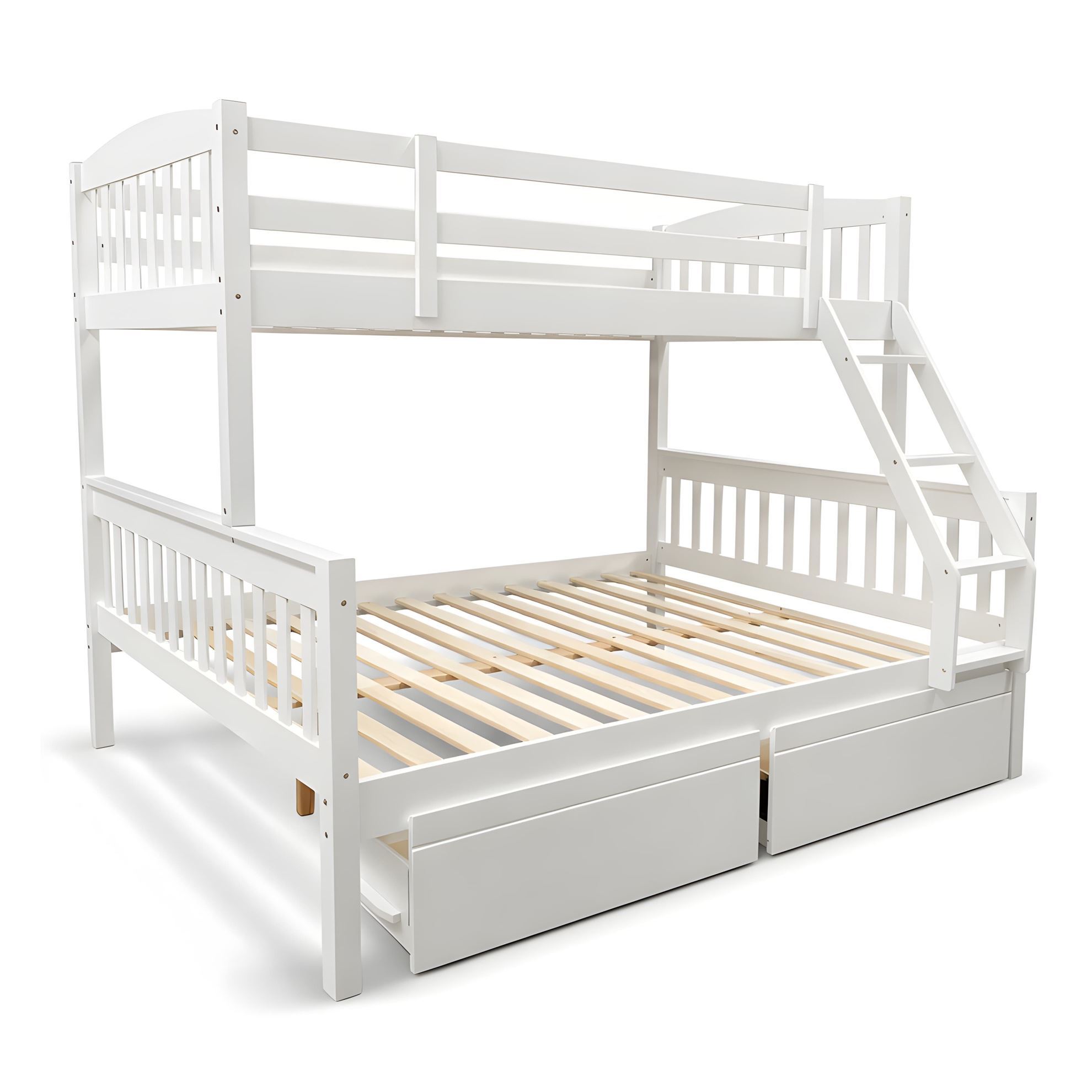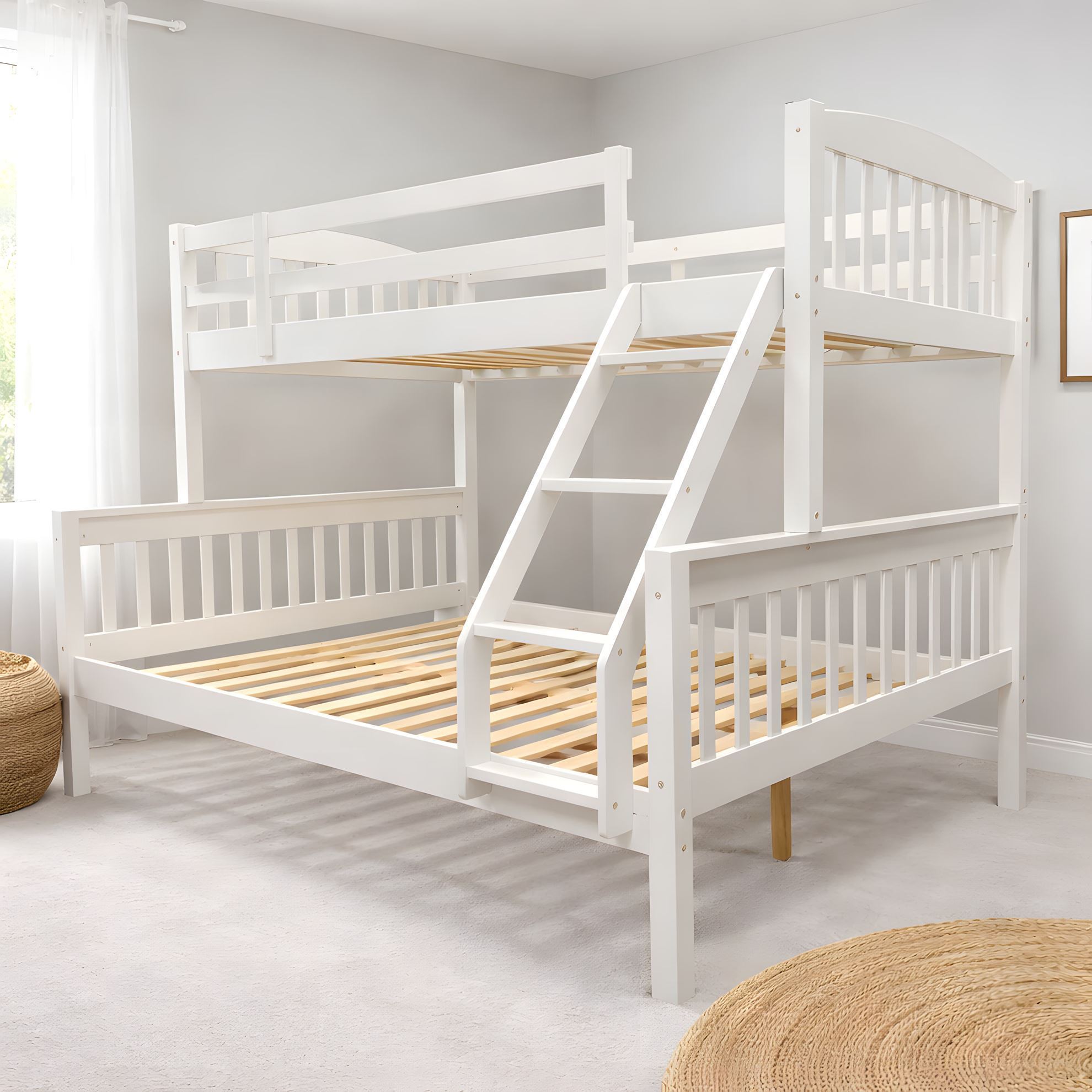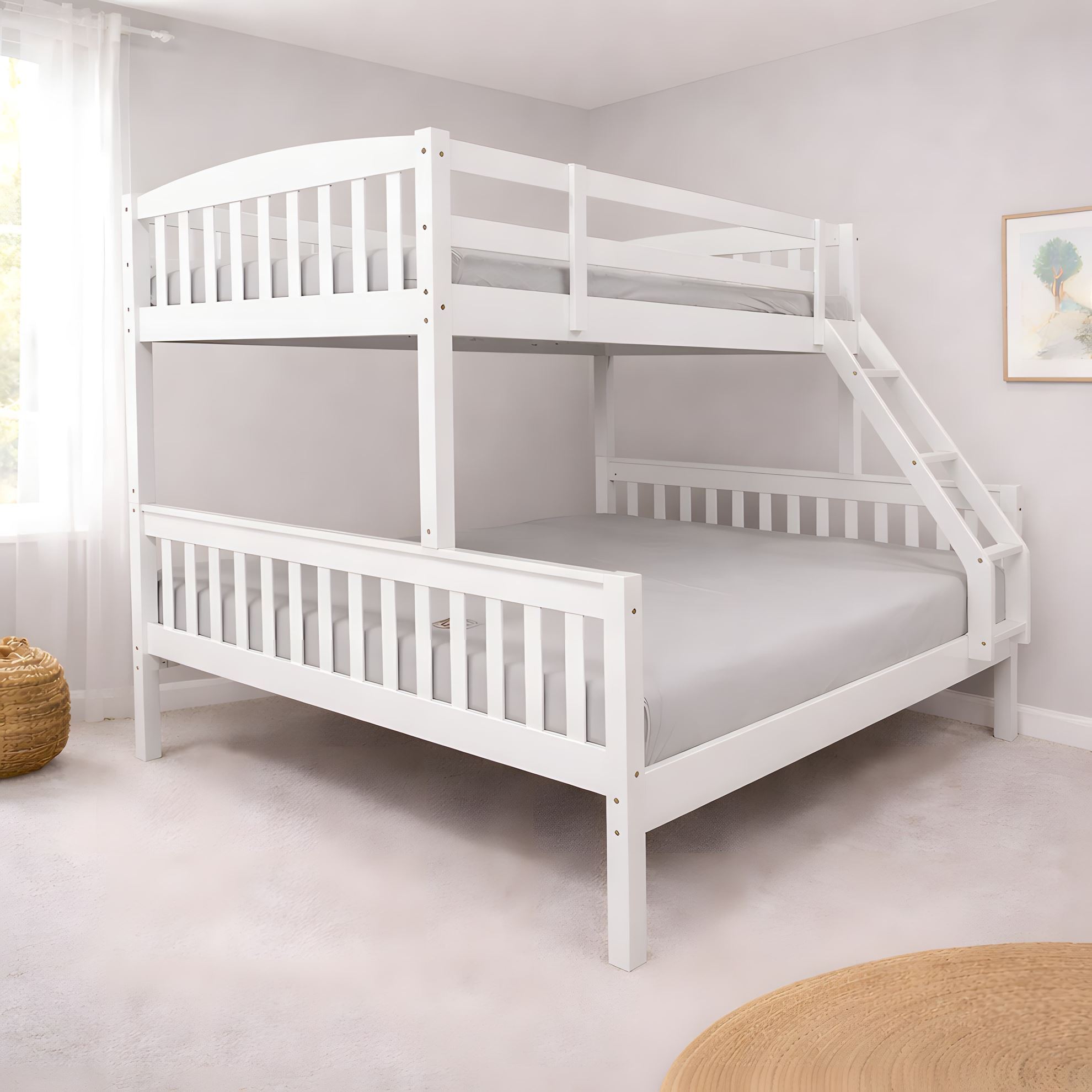• Miki Higher Solid Hardwood Bunk Bed – King Single Over Queen – White
